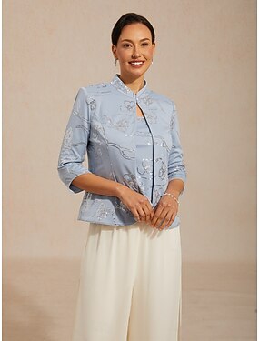 Linea ad A Lunghezza al pavimento Perline ricamate Abito Formale Abito da madre della sposa Abito da Sera Elegante Monocolore Spacco Alto Mezza Manica Colletto a Camicia Matrimonio Formale Raso con