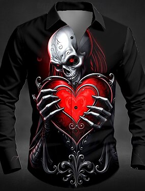 Camicia da uomo Costumi Teschio Cuore Camicia Button Up Maniche Lunghe Stile Punk Gotico Scuro Attività Outdoor Vacanza Estate Primavera Colletto Turndown Camicie Stampate 3D Rossa Verde
