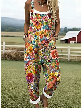 Per donna Tuta Attivo Floreale Senza Maniche Senza maniche Dritto Collo quadrato Tasca Stampato Quotidiano Vacanza Vestibilità comoda Beige Estate