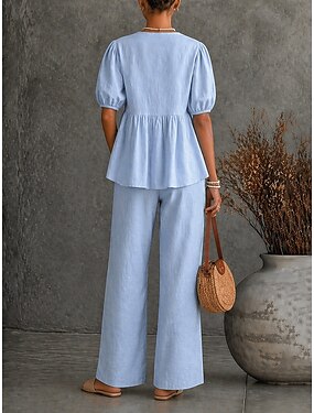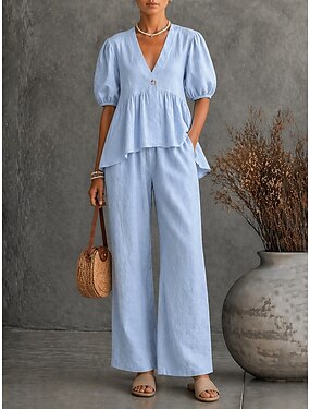 Tuta Completo Pantalone Lunghezza al pavimento Abito da Sera Abito da ballo con sopragonna Abito formale Elegante Vintage Manica Corta Scollo a V Formale Chiffon con Arricciato Volant