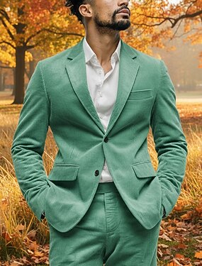 Uomo Completi Affari Verde militare Primavera, Autunno, Inverno, Estate Tuta Bavero classico Moda Formale Tinta unita Vestibilità standard 2 pezzi Monopetto Due Bottoni