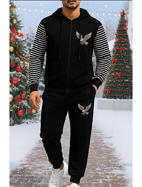 Per uomo Tuta da 2 pezzi Felpa con cappuccio Lounge Felpa con zip intera Cerniera completa con tasca Con Motivo Animale Completo Abbigliamento Primavera Autunno Nero Blu marino Viaggio Corsa