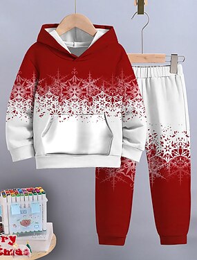 Natale Ragazzi 3D Grafico Fiocco di neve Set di Natale regalo di Natale Set Felpa con cappuccio & Pantaloni della tuta Manica Lunga Primavera Autunno Quotidiano Essenziale Casual Bambini Dai 4 anni