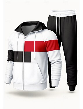 Per uomo Felpa con cappuccio Tuta da Ginnastica Tuta da 2 pezzi Coulisse Con zip Geometrico Completo Abbigliamento Autunno Inverno Giallo Rosso Lavoro All'aperto Viaggio Leggero Di tendenza Manica
