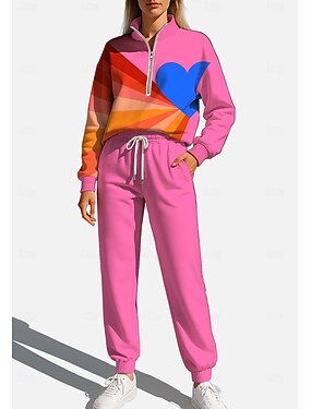 Per donna Maglia Tuta da Ginnastica Tuta da Allenamento Coulisse Cerniera Cuore Giacca e Pantaloni da Tuta Set di Abbigliamento Sportivo Primavera Autunno Inverno Rosa Casuale Allenamento All'aperto