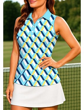 Per donna Geometrico A quadri Colore a Contrasto Canotta da allenamento Maglietta sportiva Polo da golf Senza Maniche Sportivo UPF50+ Resistente ai Raggi UV Allenamento Danza Protezione UV Pilates