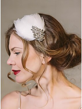 fermaglio per capelli con piume bianche da donna - copricapo vintage decorato con cristalli per signore, elegante fascinator in stile Gatsby per feste, cocktail e abiti da sera