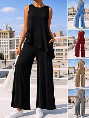 Per donna Normale Tuta Streetwear Tinta unica Senza maniche A V Bottoni Tasche Strada Giornaliero Standard Nero Rosa Vino Estate
