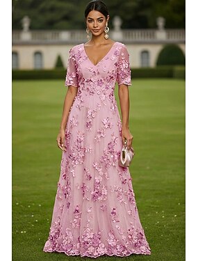 Linea ad A Abito Lunghezza al pavimento Vestito maxi Vestito da Festa Abito da Cocktail Abito da cerimonia per signora Manica Corta Scollo a V Elegante Vintage Lussuoso Formale Ospite di nozze Derby