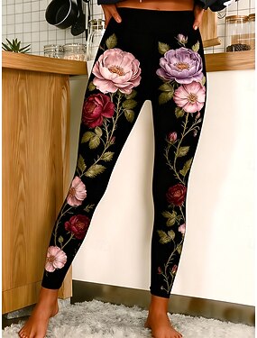 Per donna Leggings Leggings comodi Vacanza Vintage Casual Lunghezza intera Vita Alta Grafico Rosa Stampa Comodità Confortevole Alta elasticità Casuale Quotidiano Vacanza Nero Primavera Autunno