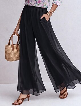 Per donna Pantaloni Pantaloni casual Pantaloni Estivi Elegante Moda Casual Quotidiano Lunghezza intera Vita Alta Tinta unica Semplice Gamba larga Spaccatura alta Fascia Elastica Comodità Leggero