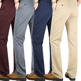 Per uomo pantaloni della tuta Pantaloni Tasche Gamba dritta Liscio Matrimonio Ufficio Attività commerciale Misto cotone Moderno Da cerimonia Bianco Vino Vita alta Media elasticità