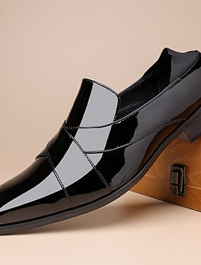 mocassini da uomo in similpelle nera verniciata, eleganti scarpe da sposa slip-on per sposi ed eventi formali