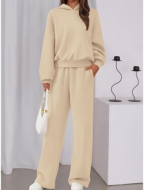 Per donna Set da due pezzi Felpa con Cappuccio Tuta Manica Lunga Con Cappuccio Semplice Sport Moda Streetwear Casuale Quotidiano All'aperto Nero Vino Blu marino Primavera Vestibilità comoda