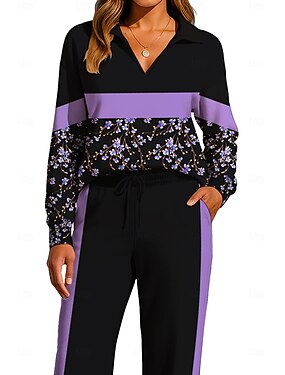 Per donna Maglia Tuta da Ginnastica Pantaloni da Tuta Coulisse Tasca Floreale Giacca e Pantaloni da Tuta Set di Abbigliamento Sportivo Loungewear Estate Primavera Autunno Inverno Blu / nero Lilla