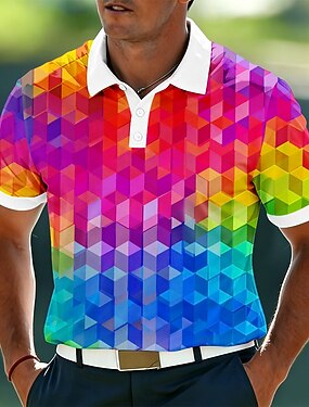 Per uomo Geometrico Polo Manica Corta Magliette polo Bavero Casual Athleisure Ferie Abbigliamento quotidiano Stampa 3D Bottoni Estate Primavera Blu Giallo Rosso