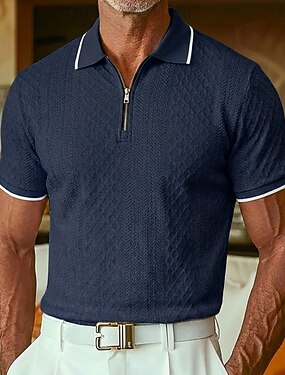 Per uomo Polo con zip Testurizzato Casuale Ferie Bavero Zip a un quarto Manica Corta Moda Essenziale Semplice Jacquard Zip a un quarto Primavera & Estate Estate Primavera Vestibilità regolare Blu