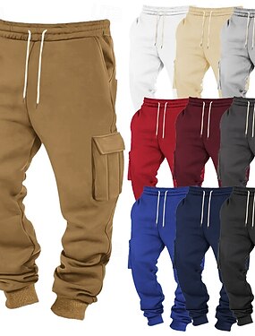 Per uomo Pantaloni in Pile Pantaloni da tuta Joggers Pantaloni Pantaloni da Tuta Cargo Elastico in vita Coulisse Multi-tasche Semplice Comodità Sport all'Aperto Quotidiano Moda Casual Nero Bianco