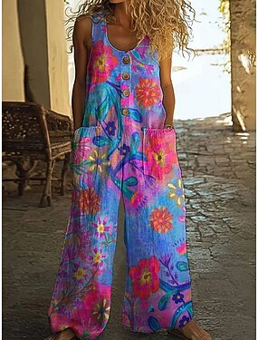 Per donna Salopette Leggero Grafico Senza Maniche Dritto con tasca Quotidiano Vacanza Vestibilità comoda Blu Viola Arancione Estate