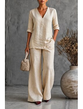 Due Pezzi Linea ad A Lunghezza alla caviglia Lunghezza Tè Abito da invitata a nozze Abito da cerimonia per signora Senza Maniche Manica 3/4 Scollo a V Elegante Semplice Casual Formale Ospite di nozze