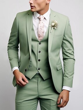 Uomo Smoking Completi Matrimonio in Spiaggia Matrimonio primaverile Borgogna Verde salvia Primavera & Estate Tuta Dentellato Quotidiano Leggero Tinta unita Vestibilità su misura 3 pezzi Monopetto Due