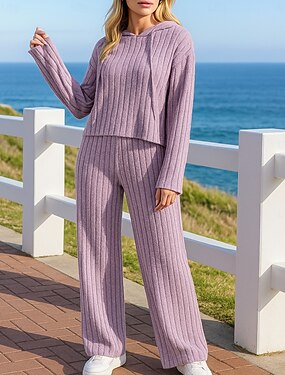 Per donna Tute in maglia Felpa con cappuccio Abiti da salotto Coulisse Tinta unita Completo Abbigliamento Autunno Nero Viola Lavoro All'aperto Viaggio Leggero Di tendenza Manica Lunga Sport