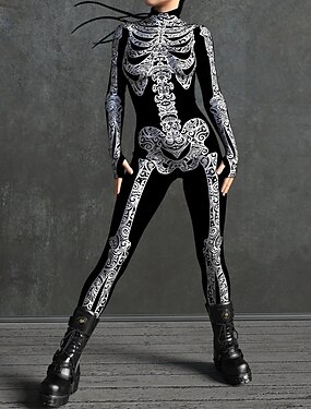Body Catsuit a Corpo Intero Teschio Scheletro Teschio di zucchero Costume Spaventoso Bambini Adulti Per uomo Per donna Ragazzi Halloween Carnevale Giorno della morte Club Feste Performance Vestirsi
