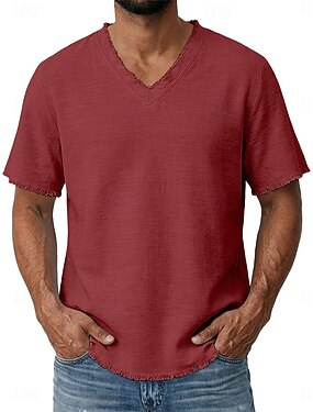 Per uomo Maglietta Camicia 100% cotone lavaggio acido Manica Corta Girocollo Estate Primavera Tutte le stagioni Tinta unica Elegante Vintage Neutro Tasca Girocollo Sbiadito Casuale Casa All'aperto