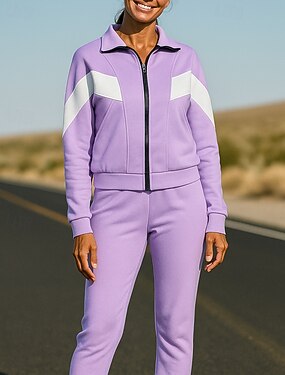 Per donna Maglia Tuta da Ginnastica Tuta da 2 pezzi Coulisse Con zip Geometria Completo Abbigliamento Autunno Inverno Viola Lavoro All'aperto Viaggio Leggero Di tendenza Manica Lunga Sport