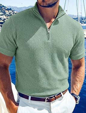 Per uomo Testurizzato Polo a Maglia Waffle Casuale Quotidiano Zip a un quarto Manica Corta Moda Semplice Cerniera Estate Primavera Vestibilità regolare Blu Nero Bianco Borgogna Verde Kaki Testurizzato