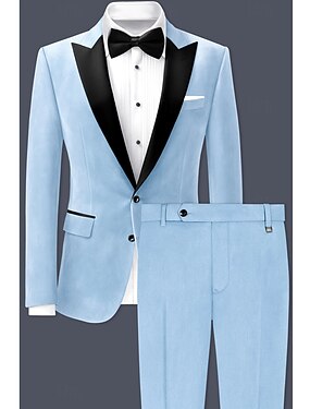 Uomo Abiti da lavoro Affari Azzurro cielo Viola Tuta Bavero classico Tinta unita Vestibilità su misura 2 pezzi