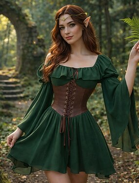 Retrò Vintage Medievale Rinascimento Lunghezza corta Vestito Maniche corte Strega Elfo Costume Per donna Halloween Carnevale Fiera Rinascimentale Festa a tema retrò Adulti Vestito Tutte le stagioni