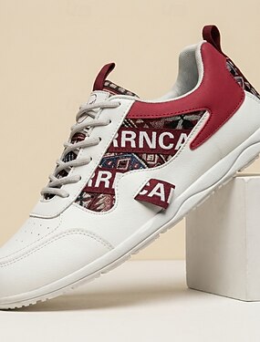 Scarpe da ginnastica da uomo bianche e rosse in similpelle, leggere e traspiranti, ideali per la corsa, la palestra e le attività all'aperto.