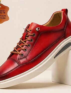 Sneakers casual da uomo rosse in pelle con lacci, realizzate in morbida pelle di alta qualità, calzature urbane eleganti per uomo, perfette per l'uso quotidiano, l'ufficio e gli eventi smart-casual.