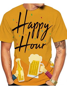 Per uomo 3D Birra Maglietta Manica Corta maglietta Girocollo Camicia Essenziale Quotidiano Uscire Giallo Abbigliamento XS S M L XL 2XL 3XL