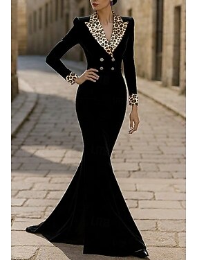Per donna Abito da smoking Sirena Tromba Formale Velluto Elegante Manica Lunga Lunghezza al pavimento Bavero Doppiopetto