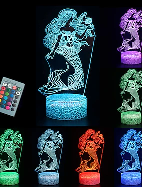 Luci notturne a sirena 3d 16 colori che cambiano lampada da comodino a led dimmerabile regali per ragazze giocattoli per bambini per la camera delle ragazze per la camera delle ragazze con