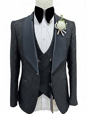 Uomo Smoking Abiti da sposo Matrimonio in Spiaggia Matrimonio primaverile Nero Primavera & Estate Tuta Bavero sciallato Festa Lusso Tinta unita Vestibilità su misura 3 pezzi Monopetto a un bottone