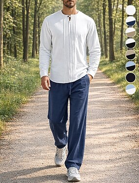 Per uomo Maglia Henley Camicia 100% cotone lavaggio acido Maglietta Manica Lunga Vintage Tinta unita Retrò Vintage Casual Stile Vintage Tinto in capo Sbiadito Henley Casuale Autunno & Inverno