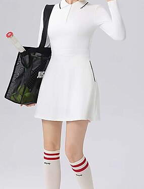 Per donna Tinta unita Abito da tennis con pantaloncini Abito sportivo Manica Lunga Tasca Elastico Traspirante Tennis Corsa Fitness Colletto Polo Vestito Nero Bianco Vino Abbigliamento da tennis
