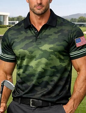 4 luglio 2026 250° Per uomo Mimetico Golf Polo Sportivi Manica Corta Magliette polo Camicie con Colletto Casual Athleisure Bottoni Estate Primavera Blu Verde Verde militare