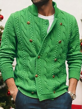Per uomo Cardigan A Coste Maglia Corto Lavorato a maglia Regina Anna Riscaldamento Moderno Contemporaneo Abbigliamento quotidiano Uscire Abbigliamento Primavera & Autunno Verde M L XL