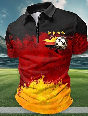Coppa di calcio 2026 Per uomo Bandiera tedesca Polo con zip Maglia da golf Manica Corta Magliette polo Camicie con Colletto Abbigliamento casual alla moda Abbigliamento da vacanza Abiti da festa