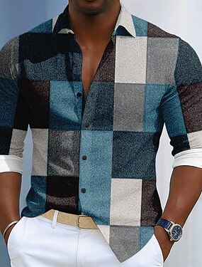 Per uomo Geometrico Blocco di colori Patchwork Camicia Camicia con Bottoni Manica Lunga Moda Casual All'aperto Abbigliamento Quotidiano Primavera Autunno Collo ripiegato Due tasche anteriori Camicia