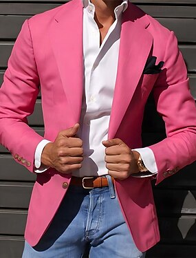 Per uomo Laurea Blazer Affari Cocktail party Ricevimento di matrimonio Moda Casual Primavera & Autunno Poliestere Tinta unica Tasca Bottoni Confortevole Doppiopetto Giacca Rosa chiaro Giallo Rosa Blu