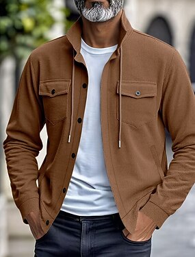 Per uomo Giacca leggera Giacca in waffle Giacca da camicia Formale Interni Tasche Primavera Autunno Tinta unica Attivo Neutra Colletto Standard Tessuto a nido d'ape Bianco Blu Grigio Giacca