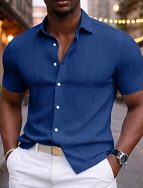 Per uomo Camicia Camicia casual Camicia con Bottoni Nero Bianco Rosa Borgogna Blu marino Manica Corta Semplice Testurizzato Colletto a Camicia Casuale Quotidiano Traforato Abbigliamento Elegante Moda
