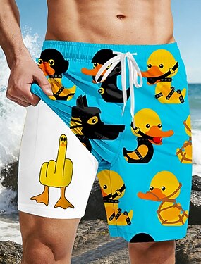 Per uomo Cartoni animati Anatra Dito medio Pantaloncini foderati Pantaloncini da bagno 2 in 1 Pantaloncini da mare Misura del girovita medio Hawaiano Divertente Vacanza al Mare Tasche Laterali Con