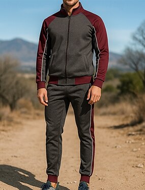 Per uomo Tuta da Ginnastica Pantaloni da Tuta Pantaloni da tuta Tasche Cerniera completa Blocco di colori Completo Abbigliamento Autunno Inverno Nero Blu Pesca Escursionismo Corsa Protezione Solare