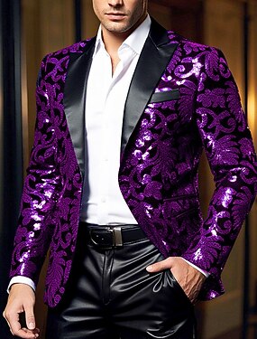 Per uomo Giacca blazer Collare di chiusura Moda Floreale Blazer Rosso Blu Viola Vestibilità aderente Monopetto Un Bottone